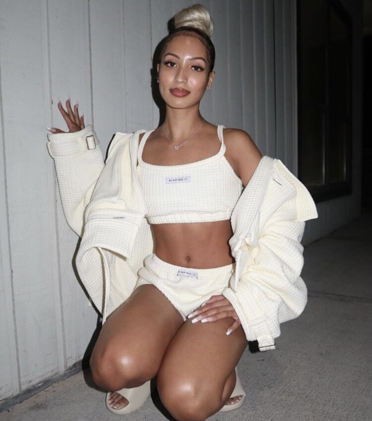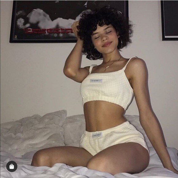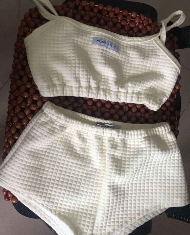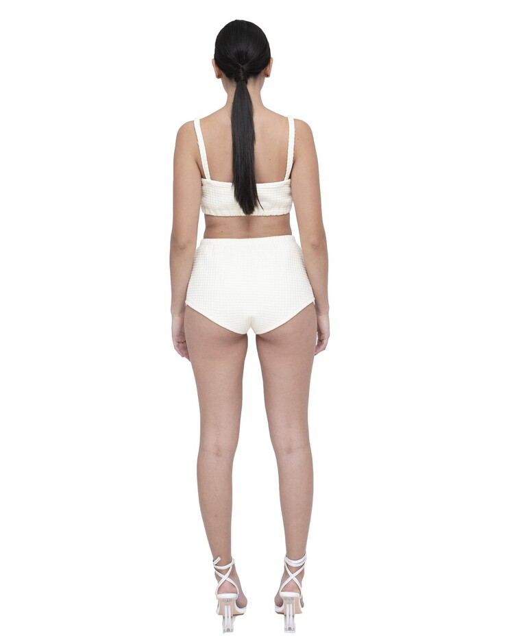 Cream quilted two piece tube top & shorts set.