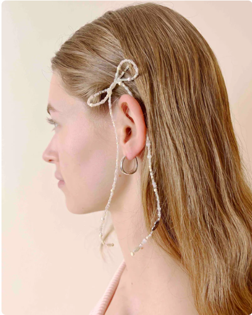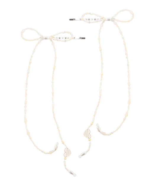 BEADED BOW HAIR PINS - PEARL