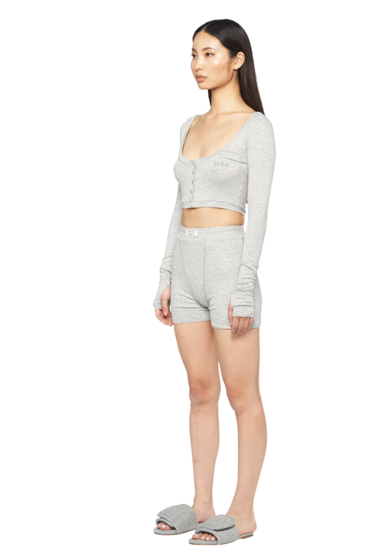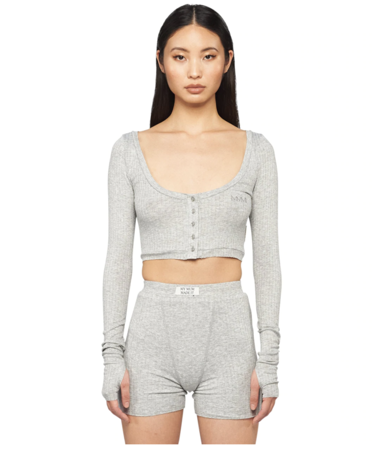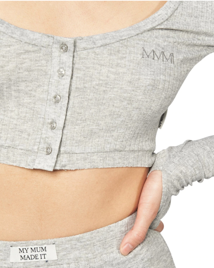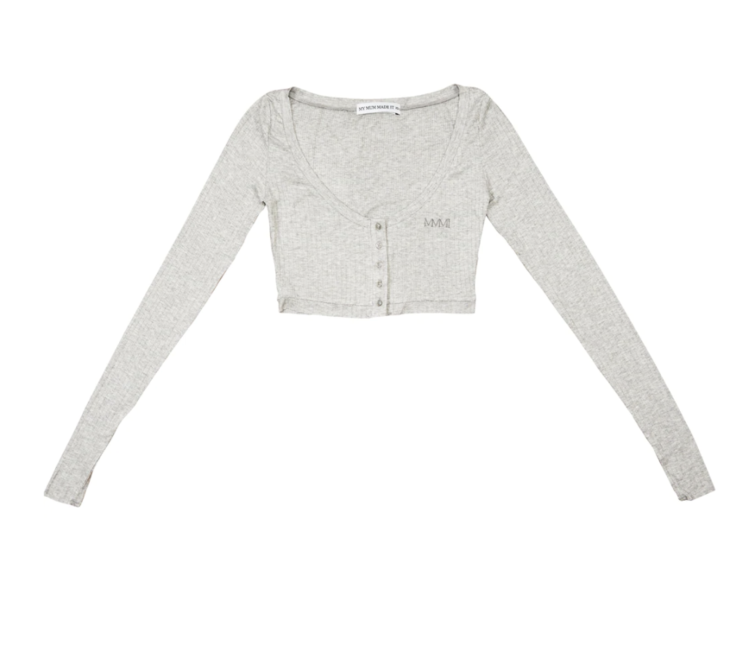[MMMI] Scoop Neck Long Sleeve Baby Crop - Grey