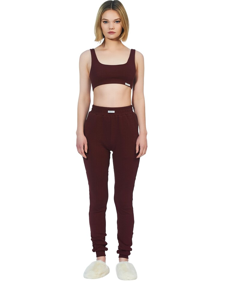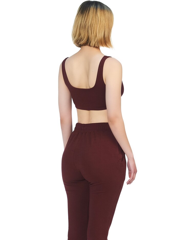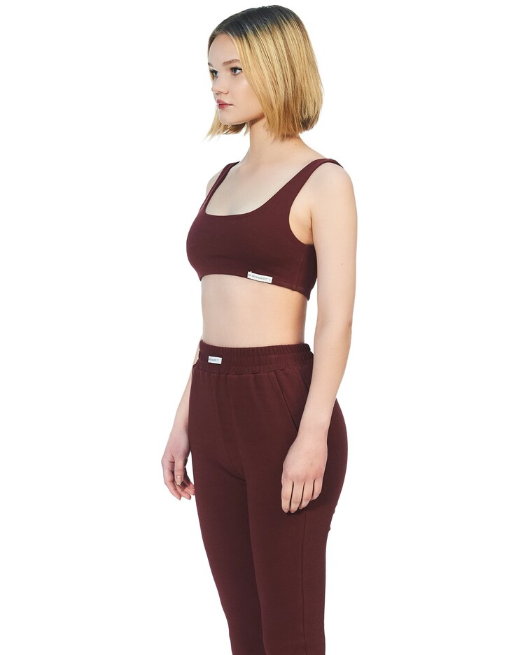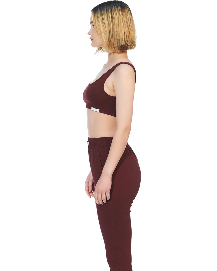 Wine red tank sleeve organic cotton bra crop.